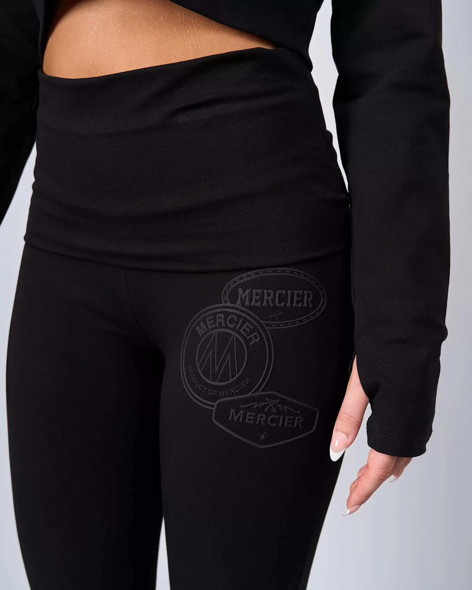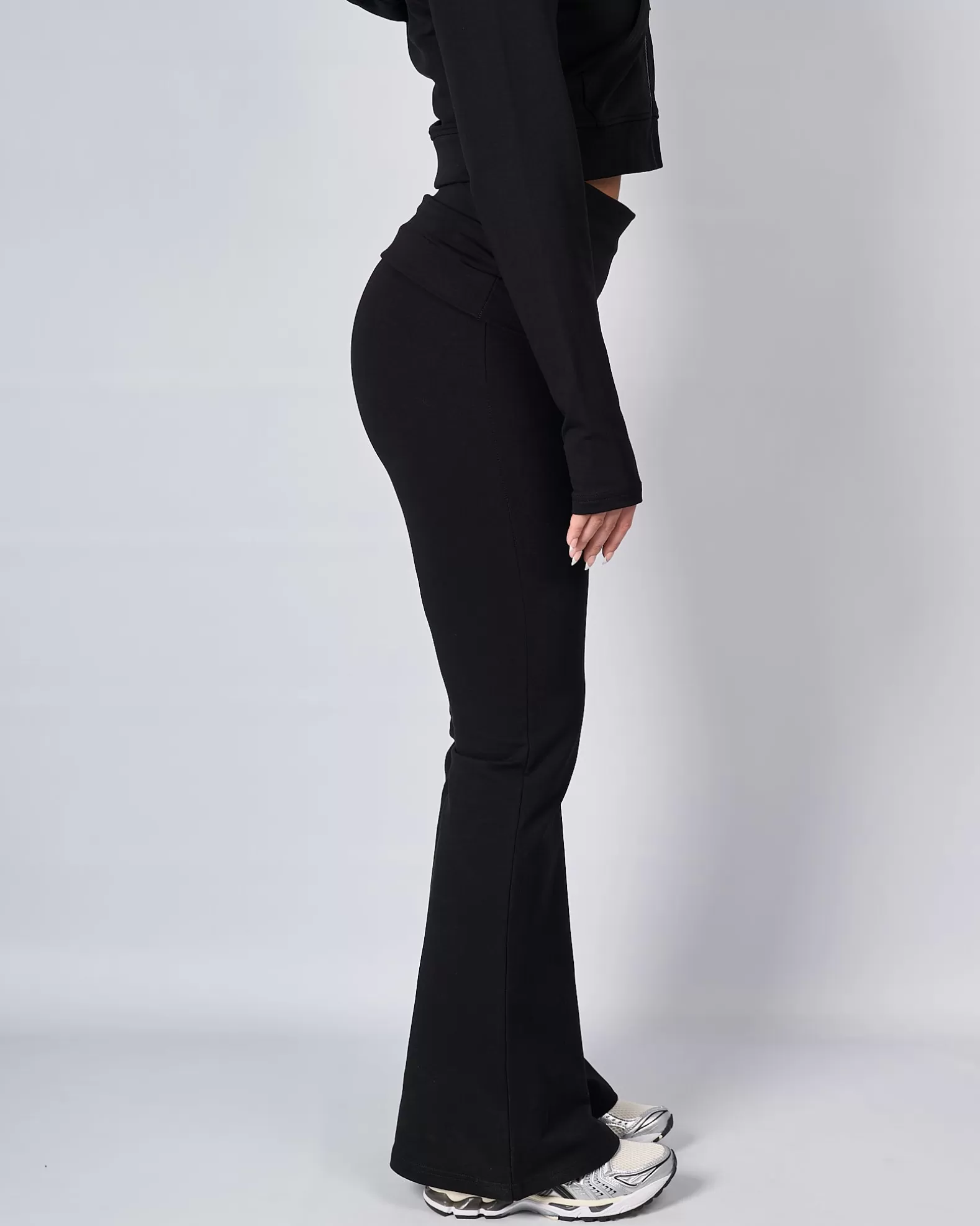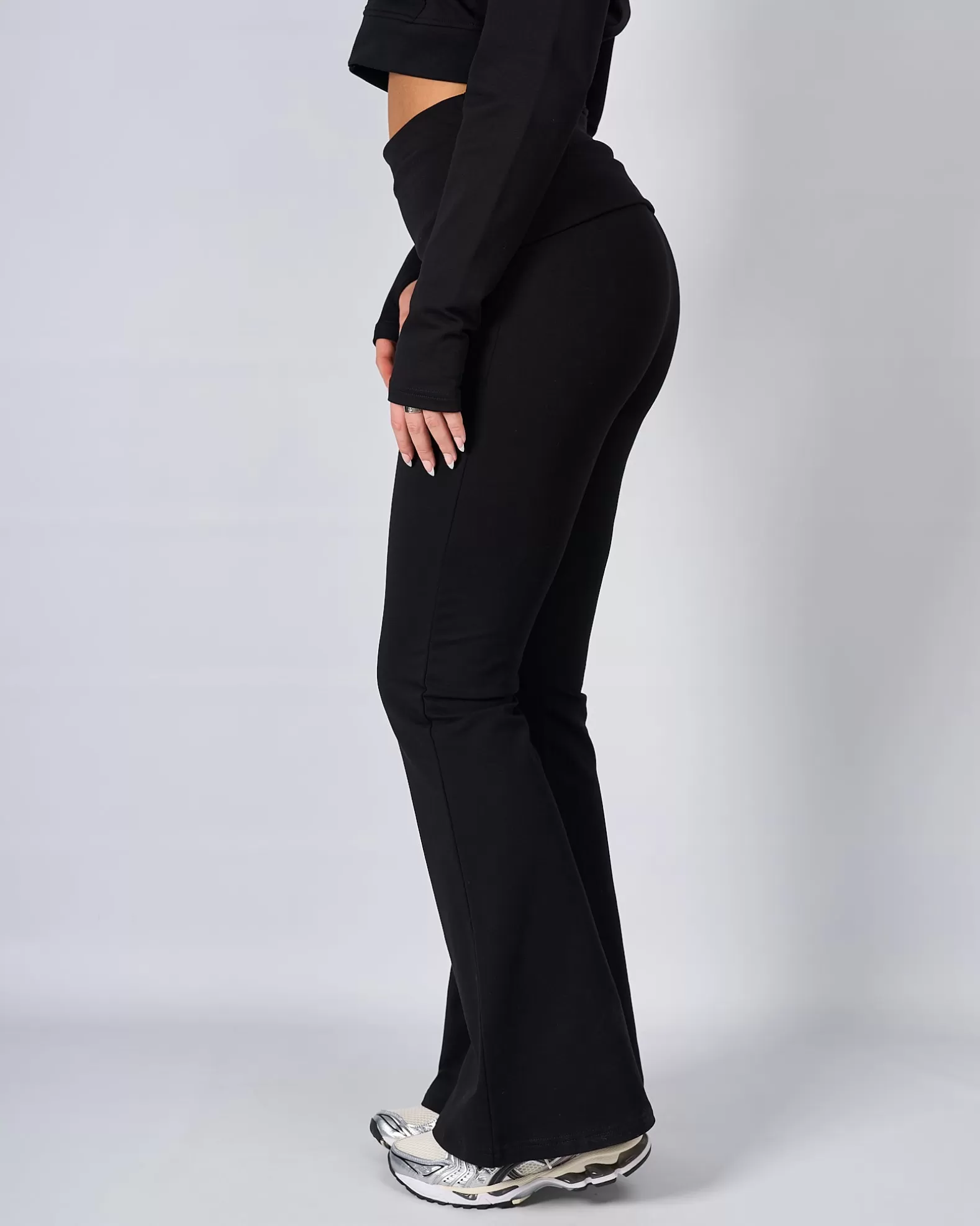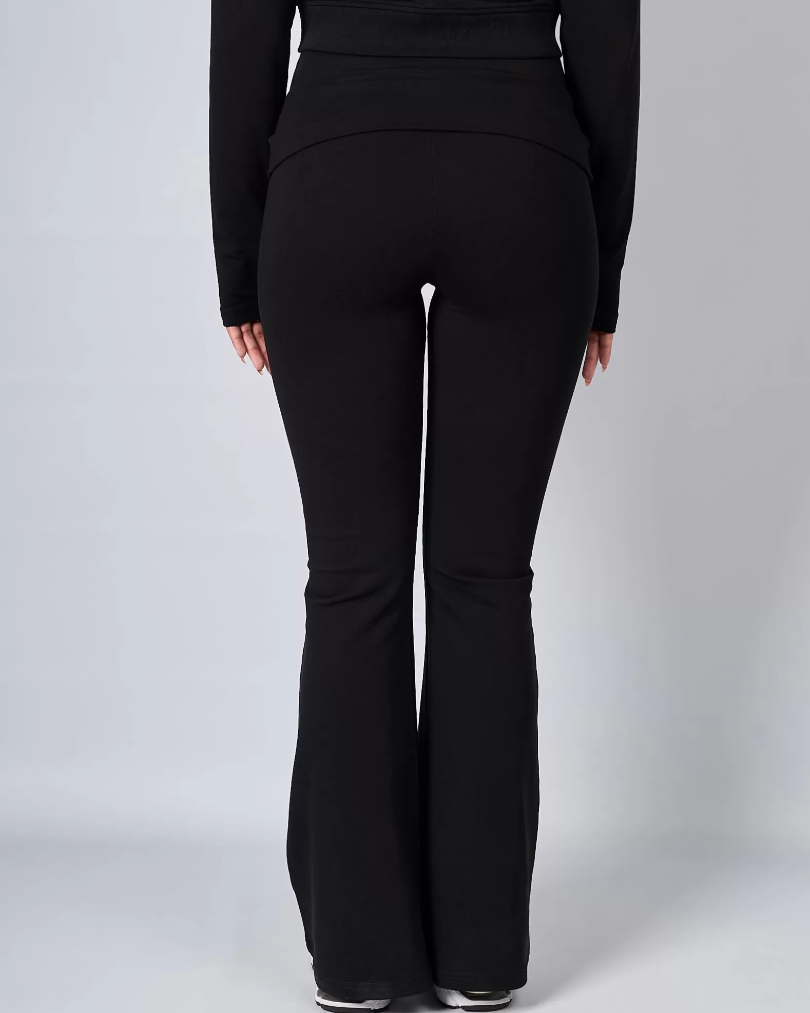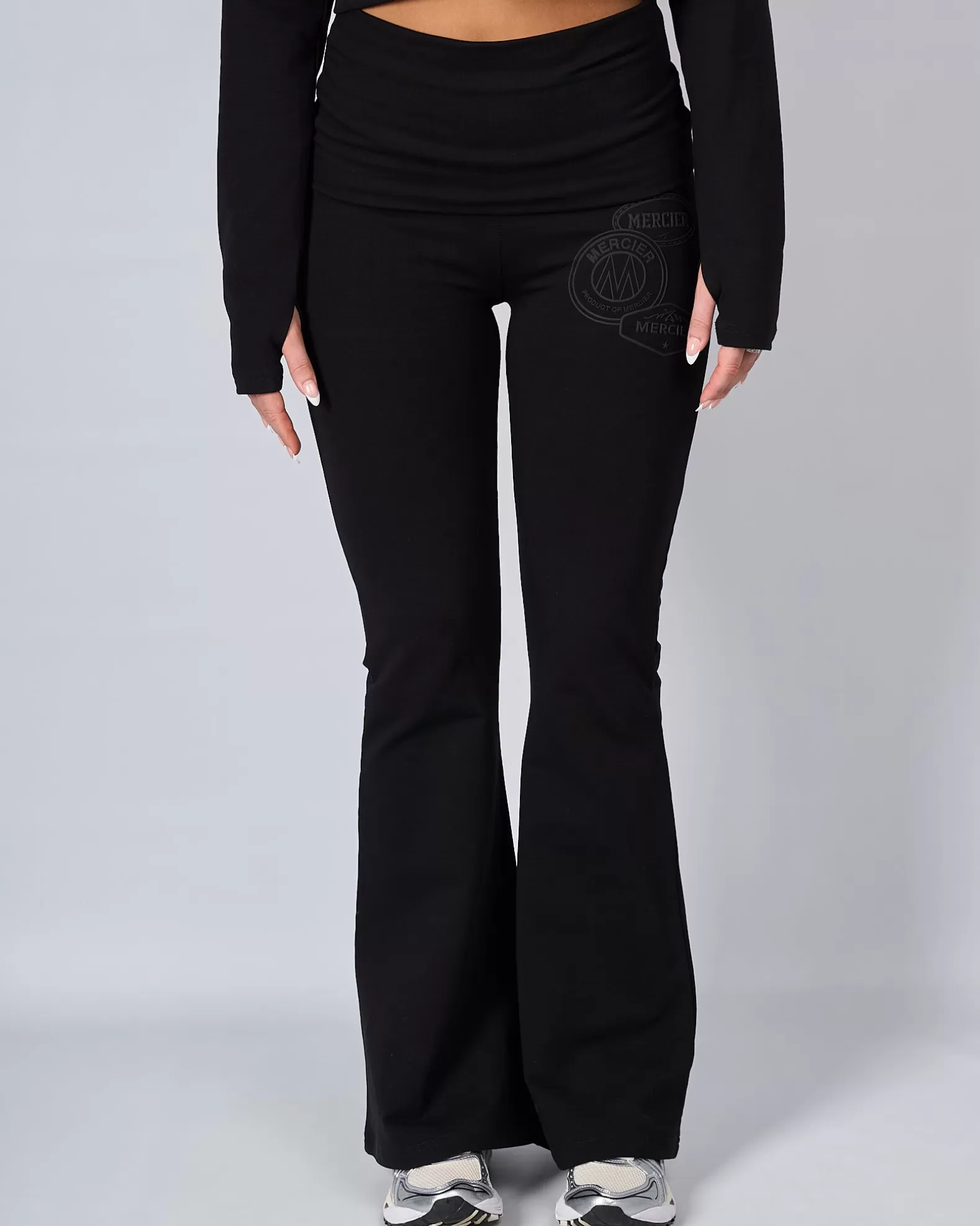 Womens Mercier Black OG Badge Flared Pants Model is 5'8 and Wears size S 95% Cotton 5% Elastane Raised Rubber OG B…