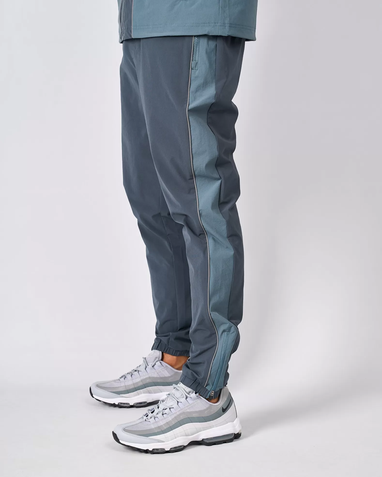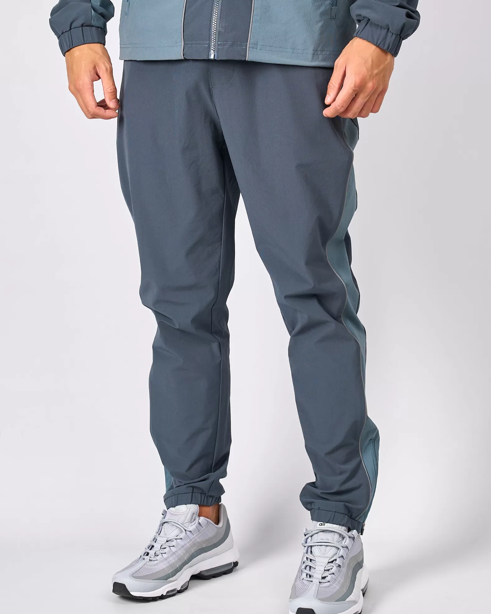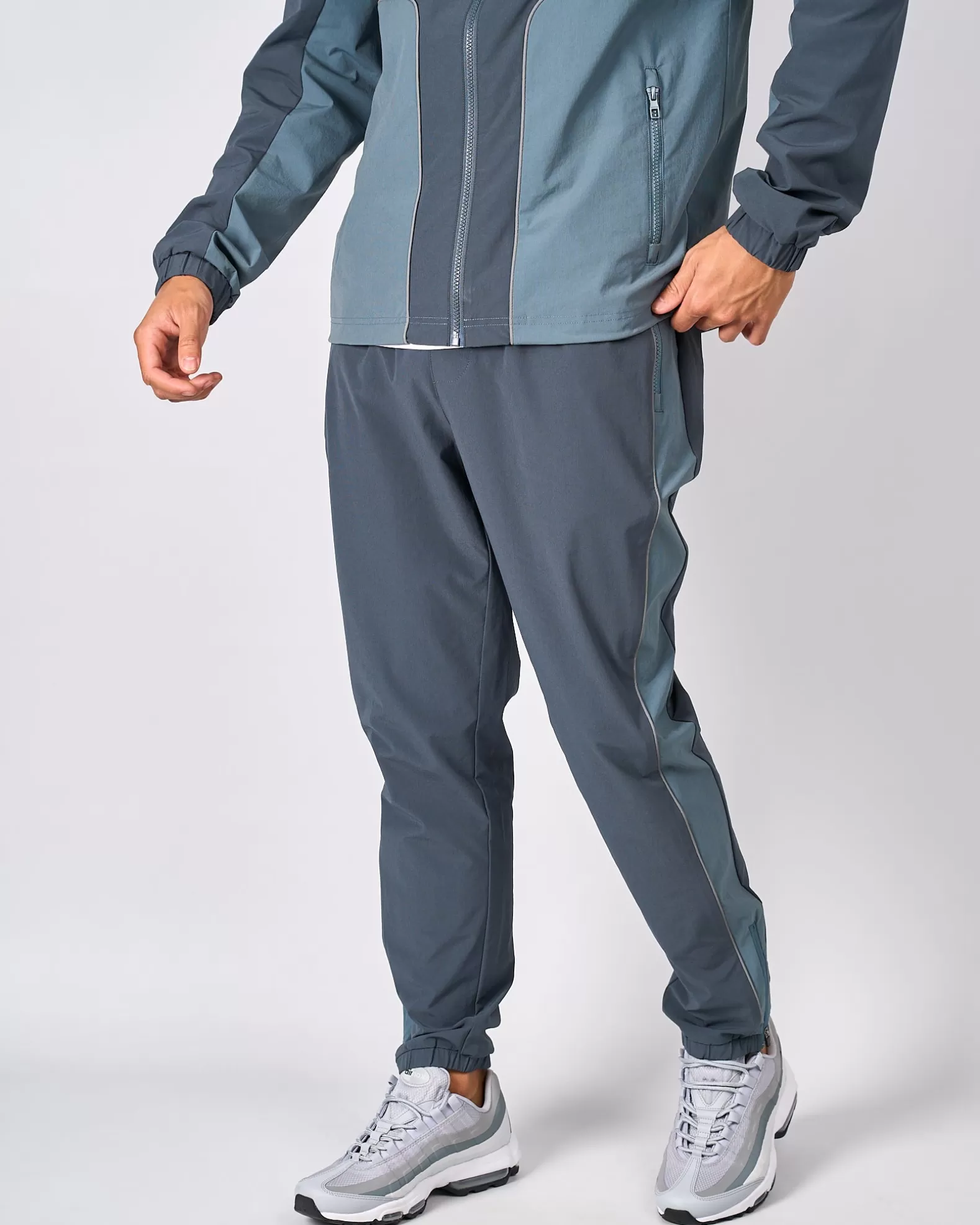 Urban Slate Trail Reflect Mercier Pant Model is 5.8 ft and wears M Wind & Shower resistant Custom branded zip 3M reflective piping 3M reflective branding